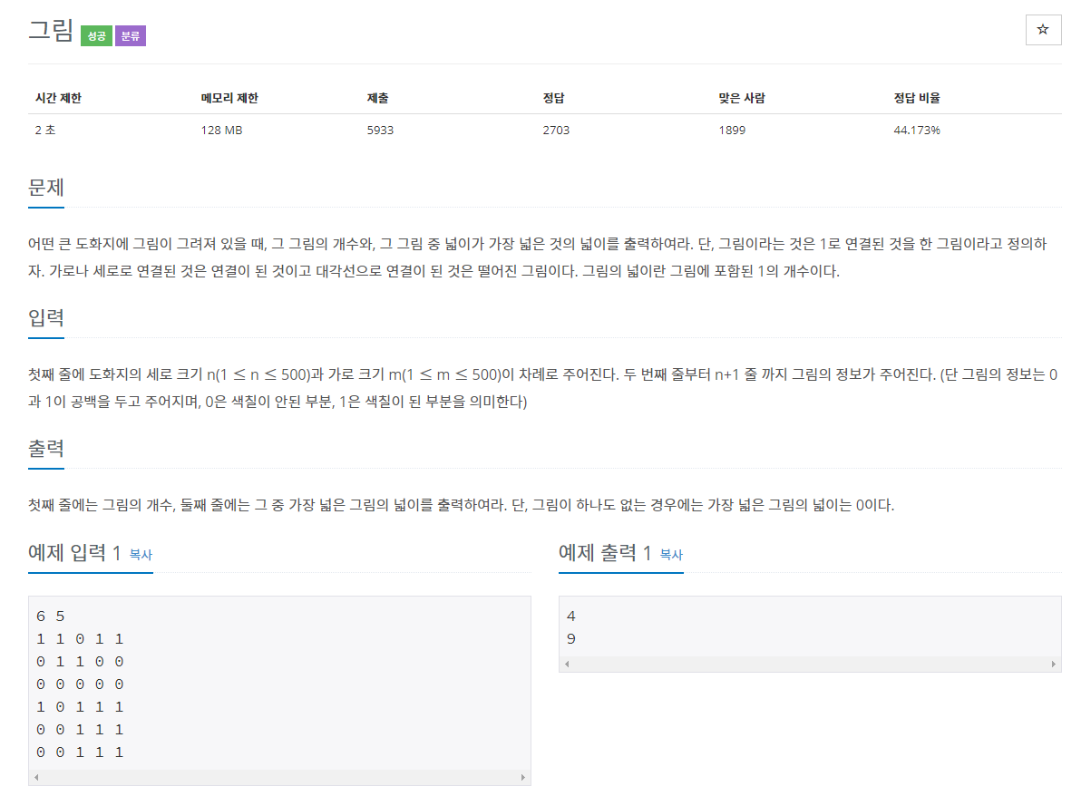 기존의 BFS 코드의 이중반복문을 따로 추가하여 검사하고 중간중간 그림의 크기를 비교하는 코드를 넣어서