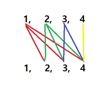 각 반복문마다 어떤 원소와 원소를 더해야하는지 색깔로 표기해봤다.