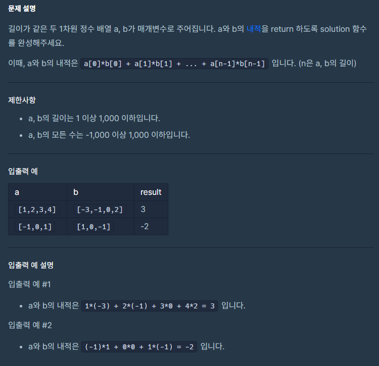 프로그래머스 / 코딩 테스트 / 내적