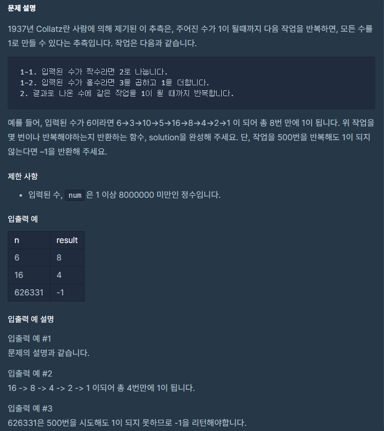 콜라즈 추측에 대해서 실제로 연산하는 프로그램을 작성하면 된다.