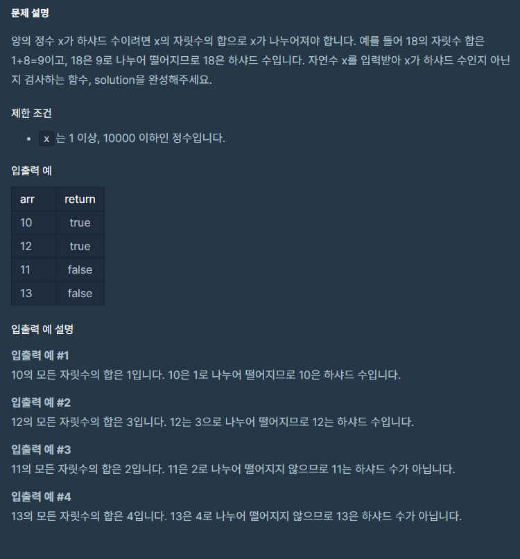 x를 합으로 나머지 연산을 진행한 후, 나머지가 있는지 없는지 확인해주면 된다.