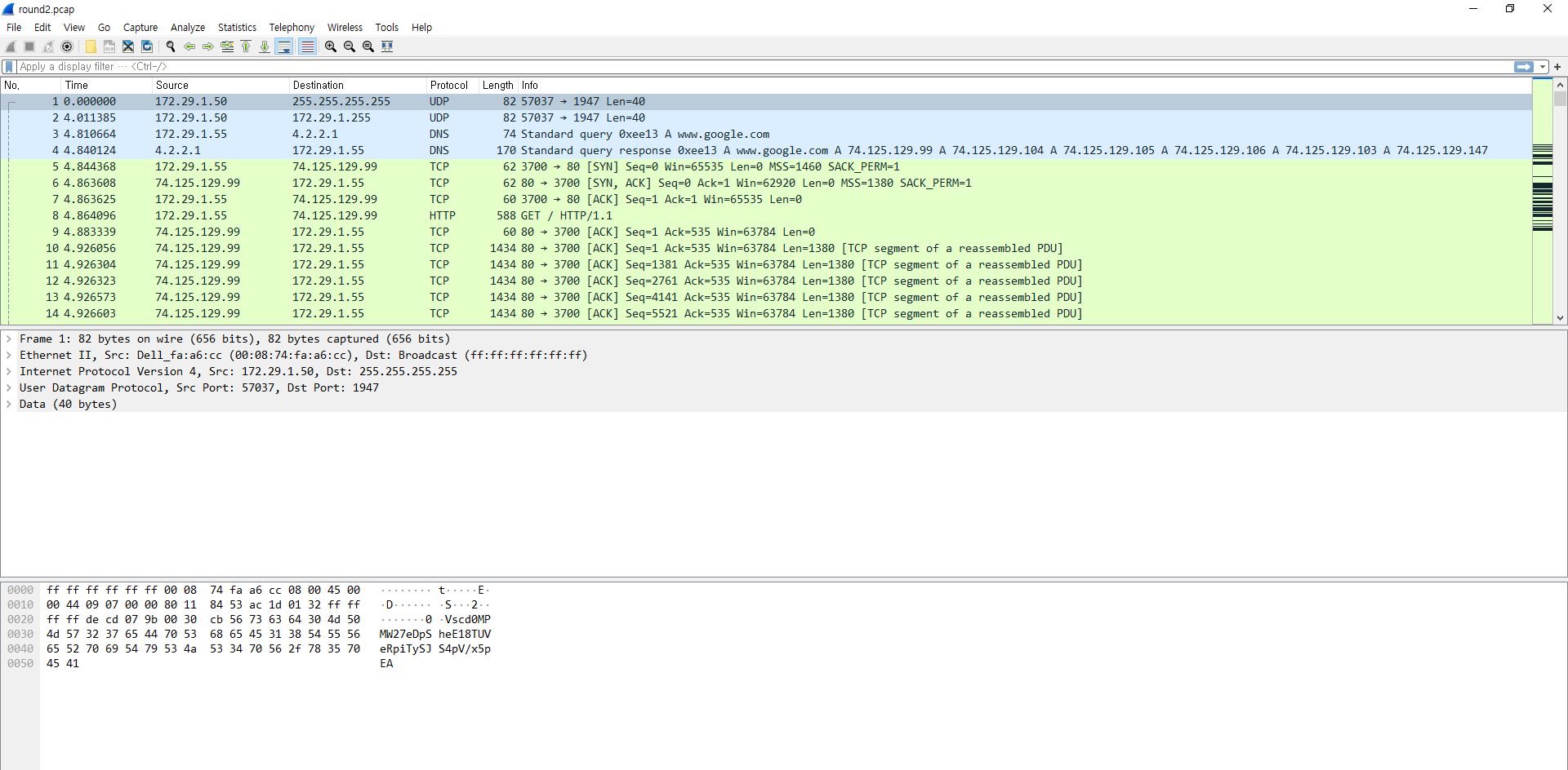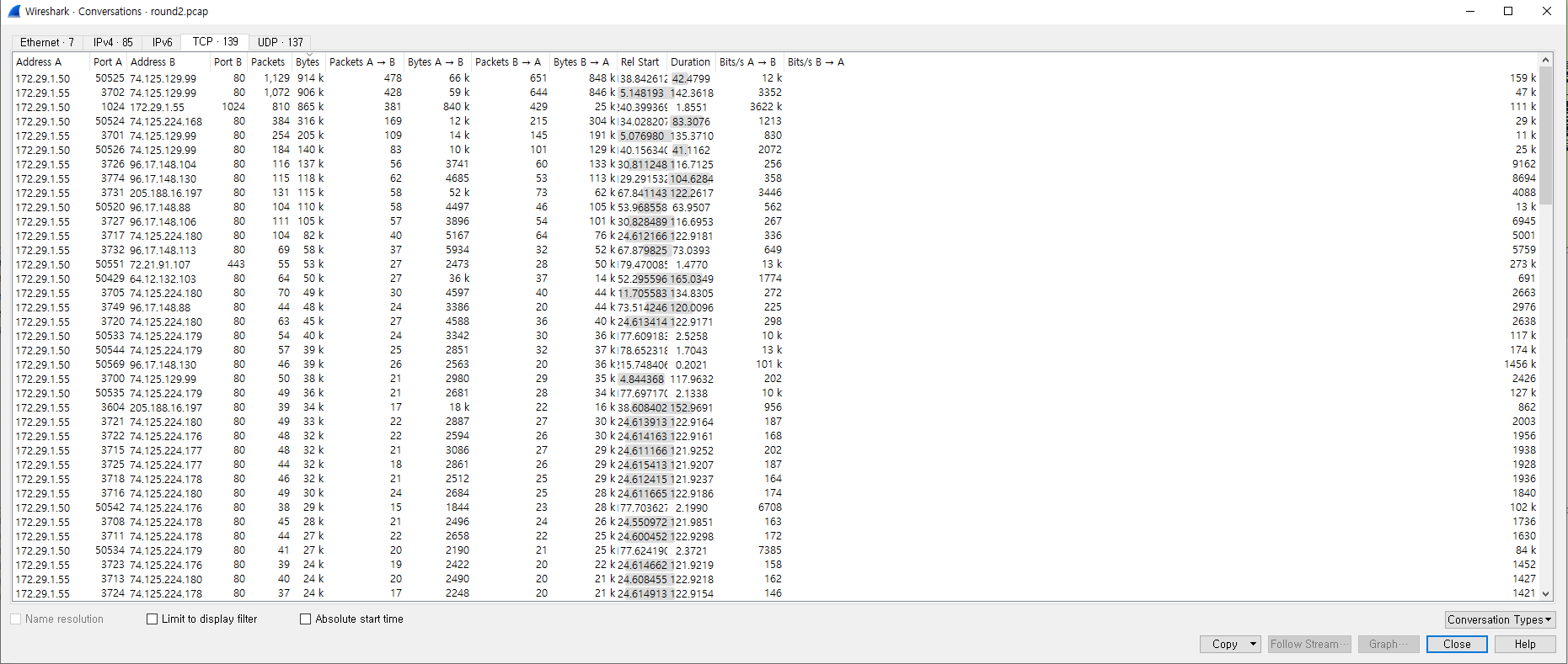 1024번 포트를 대상으로 많은양의 패킷이 오고갔다.
