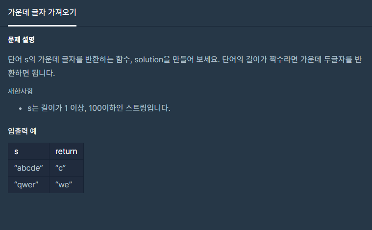 문자열의 길이가 홀수라면 길이 / 2 해준 값을 소수점을 버리고 인덱싱에 사용해주면된다.