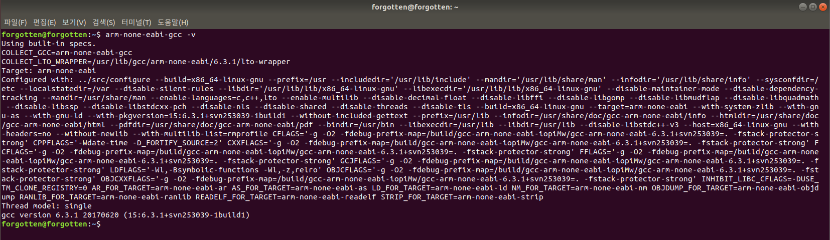gcc-arm-none-eabi 패키지와 관련 패키지들을 설치했습니다.