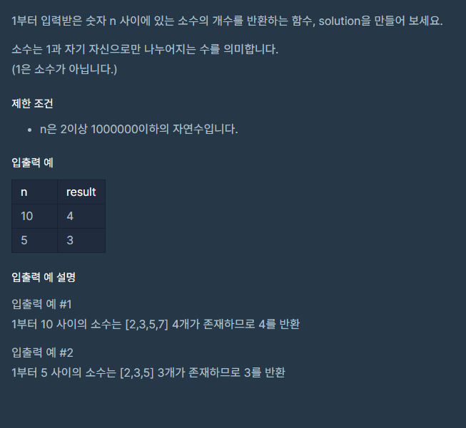 2부터 입력받은 숫자, n까지 숫자들이 소수인지 검증한다.