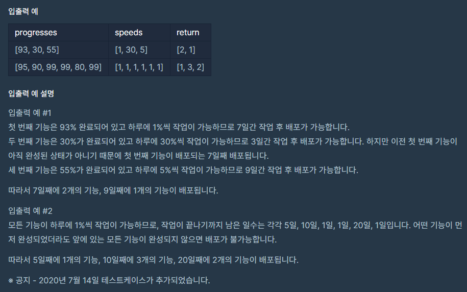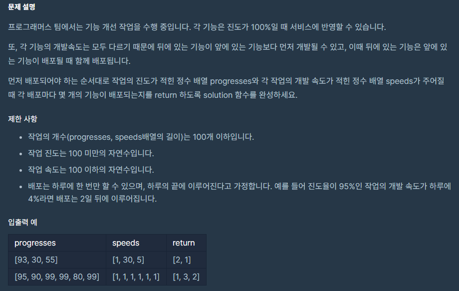 자기보다 더 많은 작업일이 필요한 기능까지 카운트를 세어 답을 구했다.