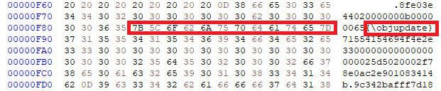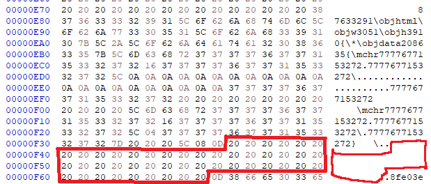 아래 사진은 rtfobj.py를 이용하여 추출한 OLE 객체의 데이터를 IDA의 Hex-View 기능을 통해서 살펴본 것이다.