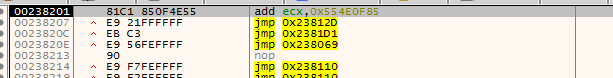5. ecx 레지스터 값에 0x554E0F85를 더해준 값을 다시 저장한다.