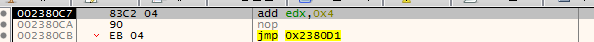 7. edx 레지스터 값에 4를 더한 값을 다시 저장한다.