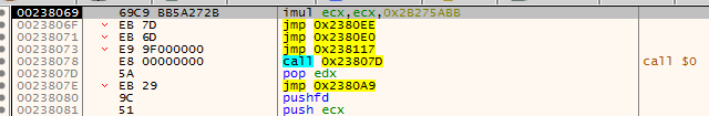 4. ecx 레지스터의 값에 0x2B275ABB를 곱한 결과를 다시 저장한다.