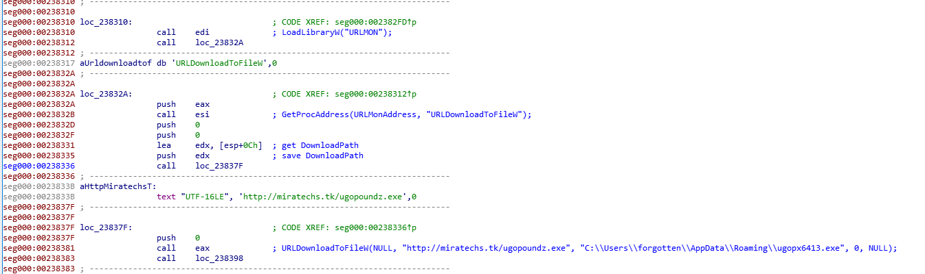 C2 서버에서 악성코드를 다운로드 받아서 아까 환경 변수 값을 바꿨던 문자열, 디렉토리 경로에 저장한다.