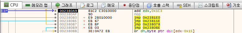 중요한 연산을 할 때마다 JMP 명령어가 존재해서 일일히 트레이싱하며 사진을 찍었다.