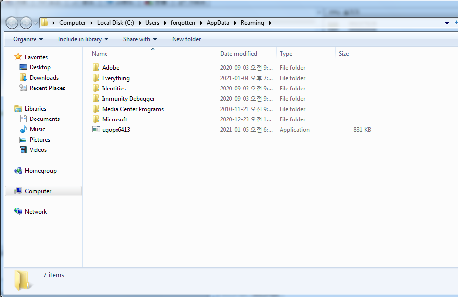 꼭 확인해보고 있다면 악성코드를 분석하기 위해서 반드시 삭제해야 한다.