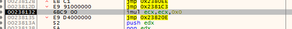 3. ecx 레지스터의 값을 imul 명령어를 이용하여 0으로 만들어준다.