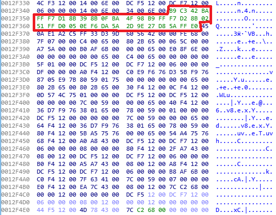 아래 사진은 덤프한 메모리의 데이터를 IDA의 Hex-View 기능을 통해서 살펴본 것이다.