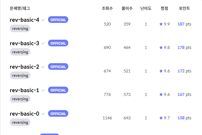 드림핵 워게임에서 제공하는 rev-basic-n 시리즈 문제들은 전부 해결한 것 같다.