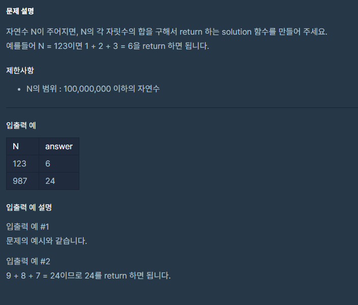 프로그래머스 / 코딩 테스트 / 자릿수 더하기